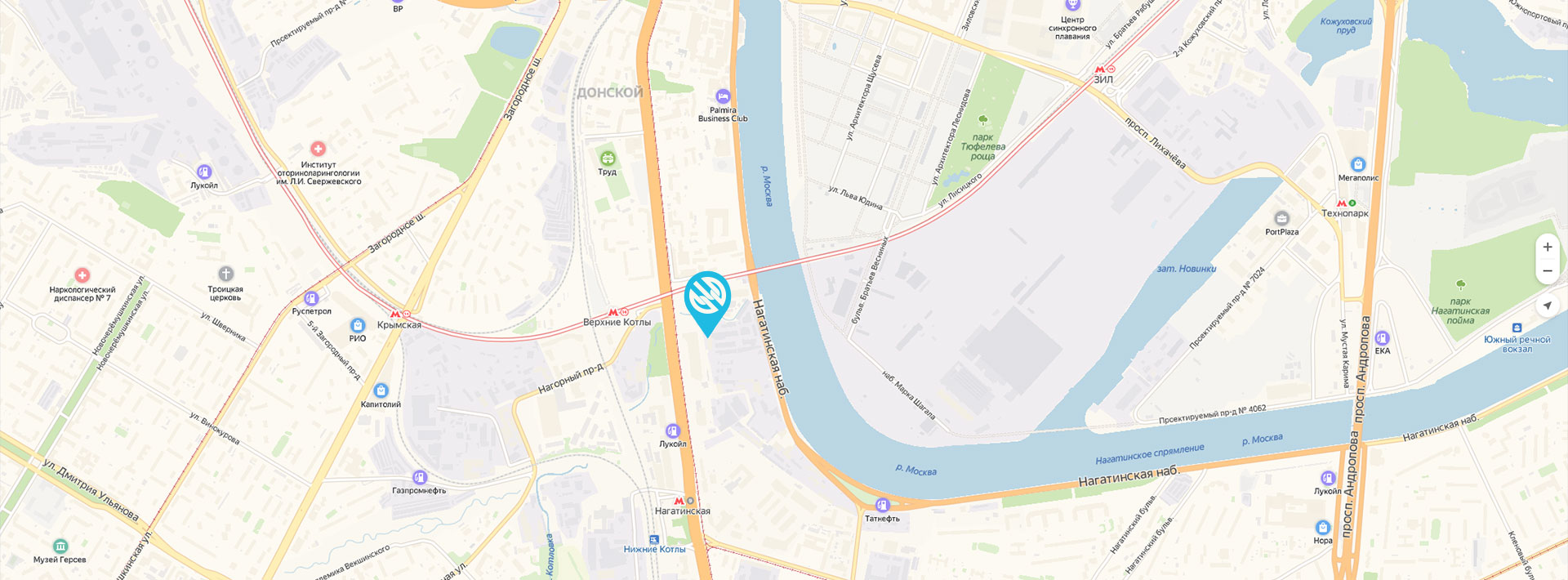 то от м.Нагатинской проехать около 300 метров. Перед зданием "Международной почты" сверните во двор и за зданием поверните налево. Еще немного вниз - и Вы у цели!
